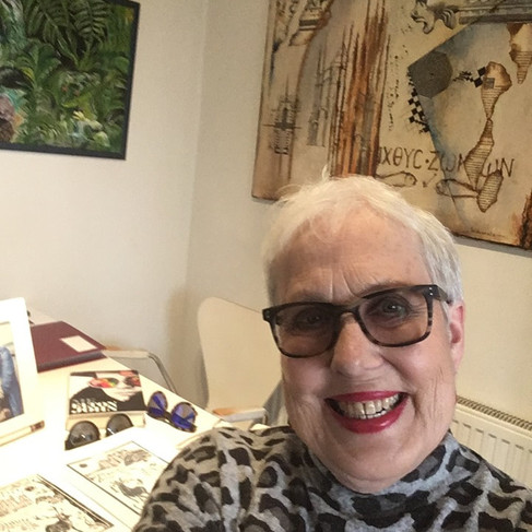 Okay, time for new Marysia working profile pix! Here's a few from this morning at my home gallery/studio taken by Marcus and a selfie. I'm promoting my artistic side with my own lino-cut prints and some of my art collection on walls. What else do you read into the story here?!