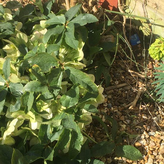 At the end of February my front patch was changed from wild flowers area (of 5 years) with ground cover being copied to match the sandy coloured pebbling of my back garden. Existing lavenders, pulmonaria, cyclamen and other perennials remain in place as you can see.