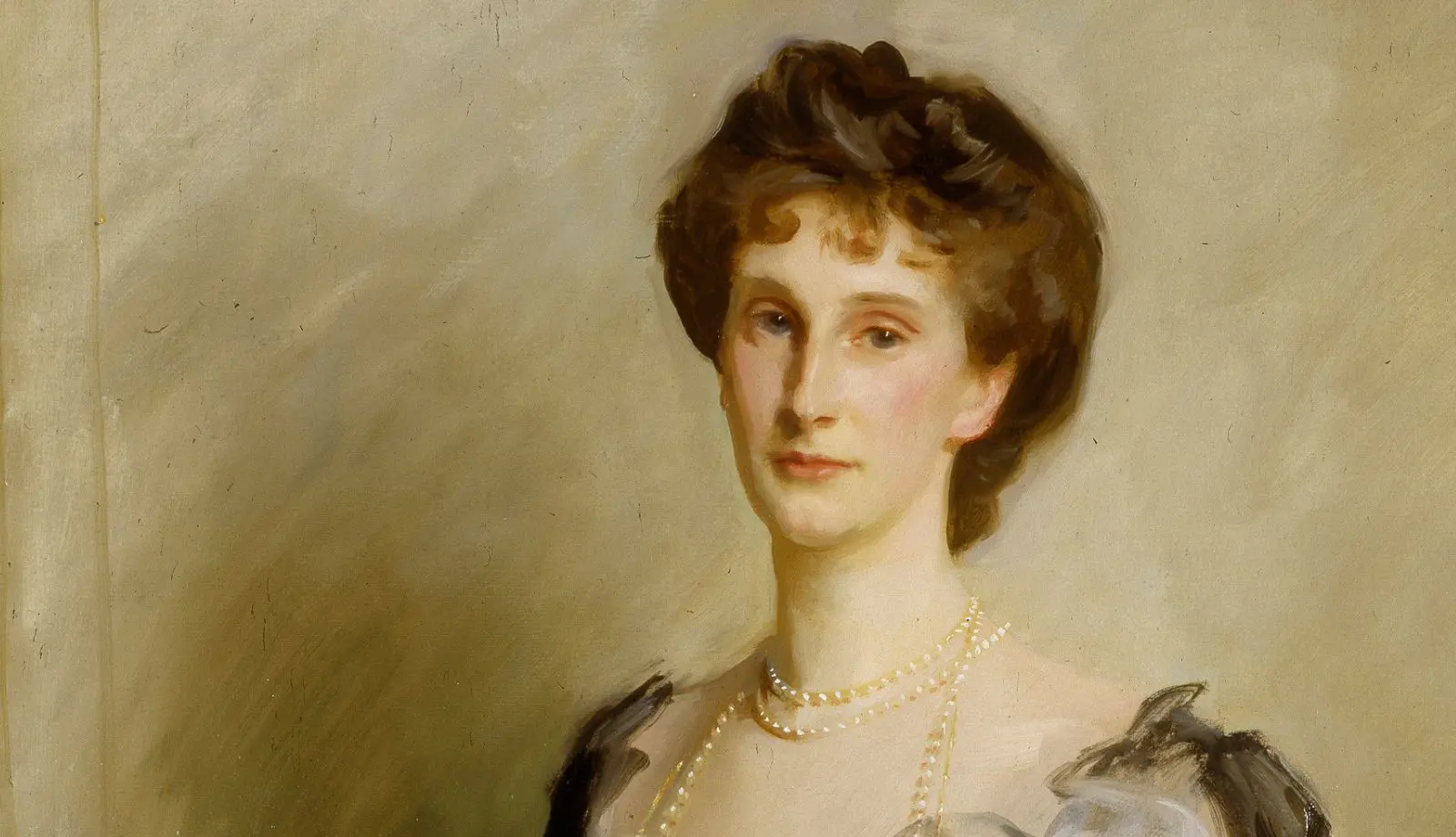 Left: Detail from a portrait of Lady Evelyn Cavendish, John Singer Sargent (1902). Chatsworth House.