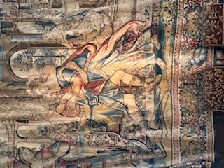 Centre - Penelope greeting Ulysses on his return home from war after a long absence of 20 years. Portrayed in a Brussels tapestry in the High Great Chamber, formerly the Presence Chamber.