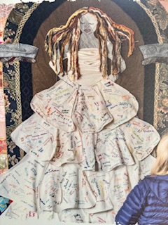 their personal notable women’s names to the work, women that they admired for varying reasons. This artwork formed part of a research project between the National Trust and the University of Leeds exploring how contemporary art may influence visitors’ engagement with our heritage such as at Hardwick Hall. Those names were embroidered onto the artwork to make the choices a feature that could be viewed by other visitors and enjoyed and appreciated as a whole by all. It was a successful venture and a short film featuring the new work is currently on display at Hardwick Hall.