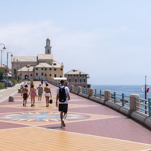 Moving on around to the rear of the church you will be presented with the sight of Boccadasse beach and some of its many pastel painted buildings.