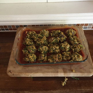 Ramona Usher, historic buildings specialist, forwarded her two vegetarian & vegan recipes to me - Crispy Cauliflower Bites and Meatless Meatballs in tomato sauce. Crispy Cauliflower Bites One large cauliflower, cut into florets 4 cloves fresh garlic, 1 tablespoon fresh chopped ginger, 2-3 birdseye chillies (red or green) chopped Two parts plain flour, one part corn flour (about 200g/100g I tsp each Ground coriander, fennel and cumin seeds, Chilli powder and paprika Salt and pepper to taste Mix with some water (add slowly) to produce a thick paste Drop the cauliflower in and make sure it is coated thoroughly Heat a pan of oil and fry dipped cauliflowers until golden.